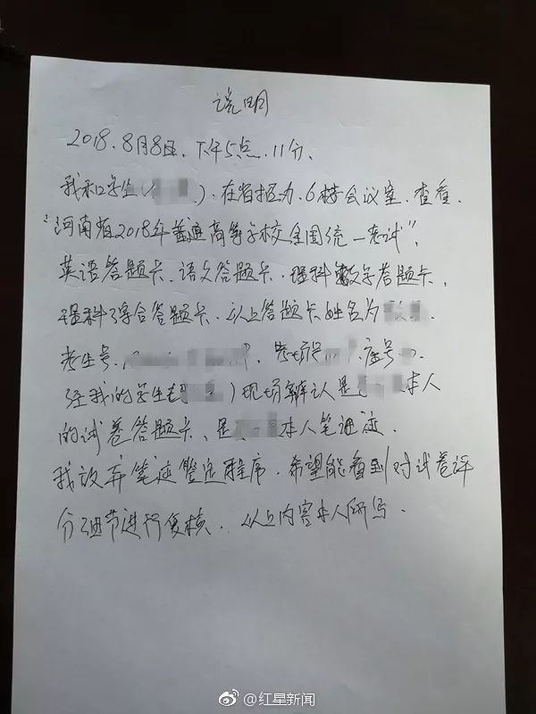@红星新闻8月8日消息,河南四考生高考答题卡调包疑云有新进展。