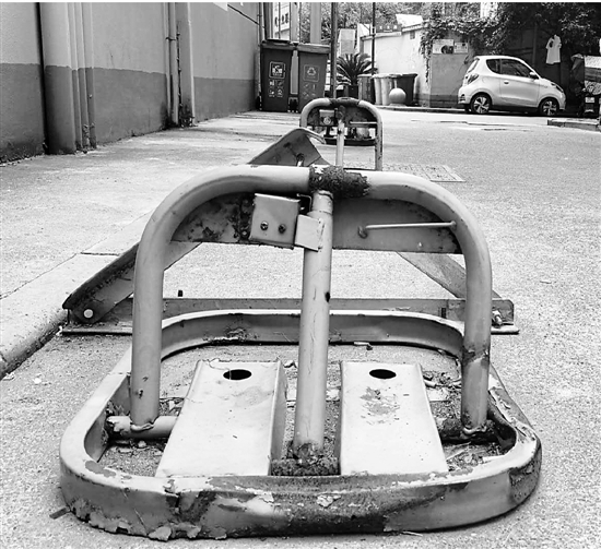 杭州戒坛寺巷安林小区是个老小区,由四幢上世纪80年代住宅楼组成,小区道路边、空地上装满地锁,锈迹斑斑、形态各异,记者在现场数了数,足有20多组。