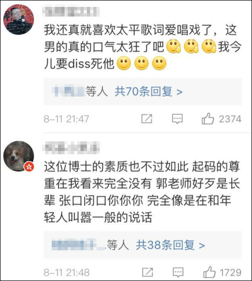 网友也被激怒,认为这位博士手指郭德纲,直呼于谦名字,甚至直接放话“走着瞧”,是素质低下的表现,连起码的尊重都不懂。