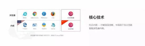 红芯公司这些官方宣传的前含义,显然是红芯浏览器是与微软IE、谷歌Chrome一个水平的浏览器,红芯内核是与Trident、bilnk、WebKit等一个等级的内核。