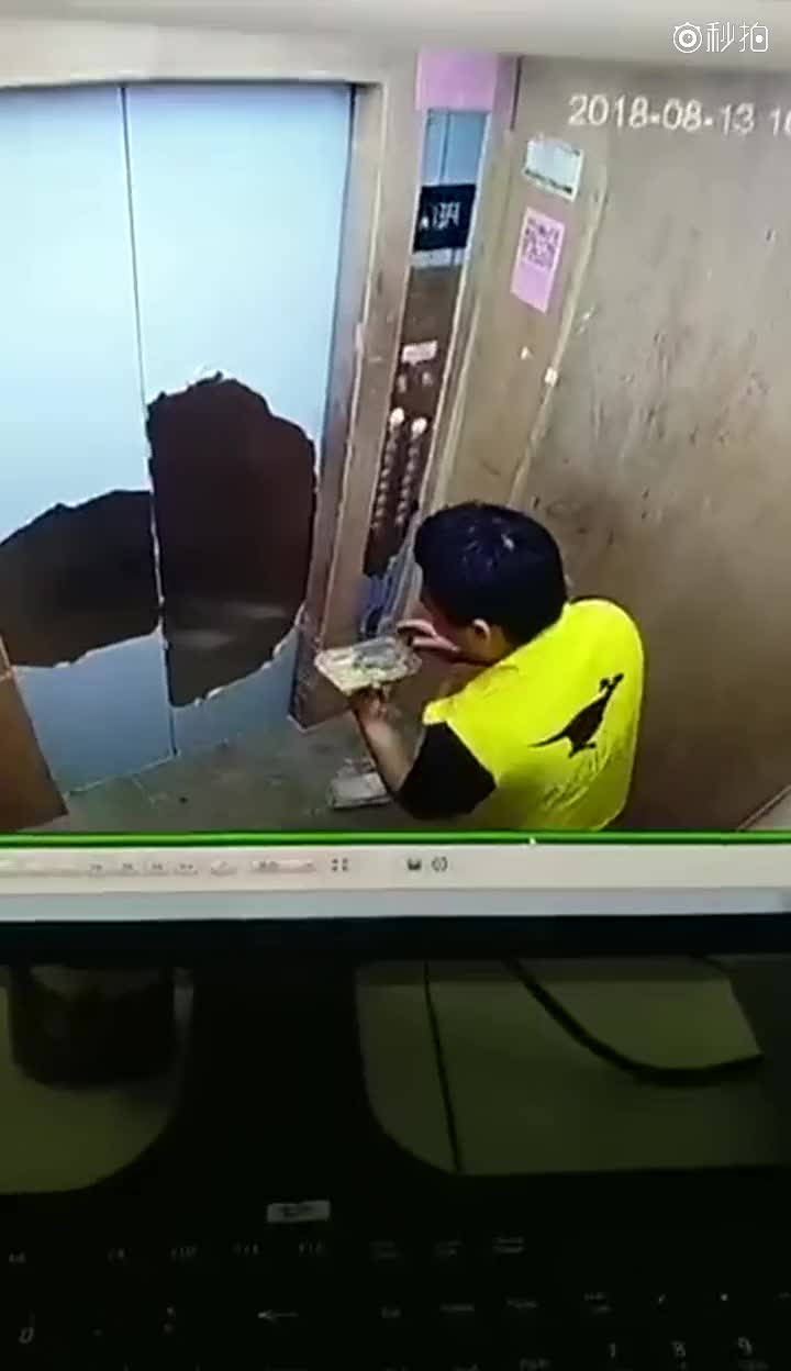 视频显示,8月13日,一身穿美团外卖背心的小哥在电梯里偷吃外卖。这位小哥不用餐具不用手,回归最原始的状态,直接上嘴啃。