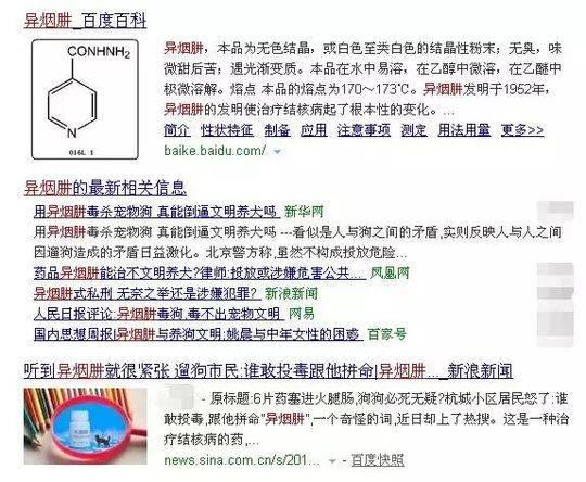 近日,一种使用异烟肼毒杀狗的方法上了热搜,一篇名为《遛狗要栓绳,异烟肼倒逼中国养狗文明进步》的文章称,异烟肼对人类无害,但对犬类有非常强的毒杀作用,可用于小区投放,倒逼文明养狗。