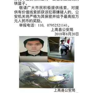 8月20日,江西上高县委宣传部@上高发布通报称,江西上高县沿江中路建材市场“顾地管业”店内和黄金堆成仁驾校相继发生2起持枪杀人案,犯罪嫌疑人况玉林在逃。上高警方悬赏10万缉凶。