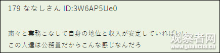 认真工作,自己的地位和收入稳定就可以了。这些公务员大概是这样想的吧。