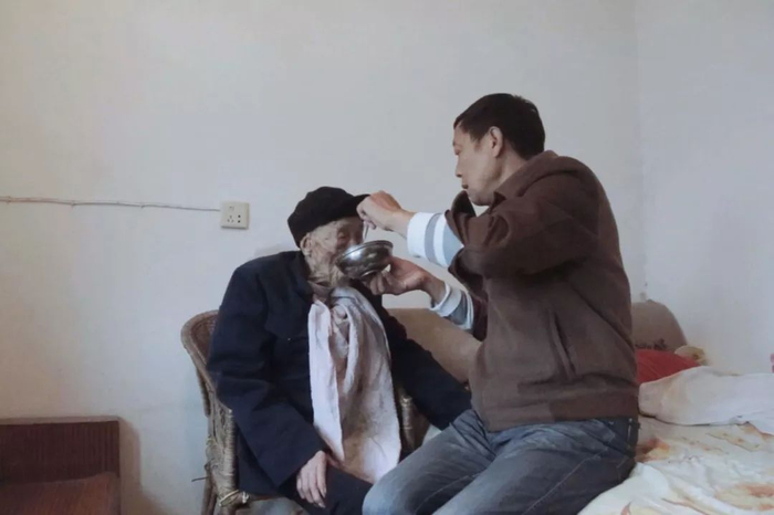 熊先生已经70岁了,还要照顾105岁的父亲,一照顾就是十多年,直到父亲去世。中国有一句话叫作“久病床前无孝子”,我觉得熊先生是个孝子。