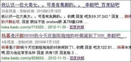 杨幂成名以来一直过不去“脚臭”这个梗,从仙剑奇侠传时期被剧组的剧务发帖称“闻到了杨幂脚臭”。