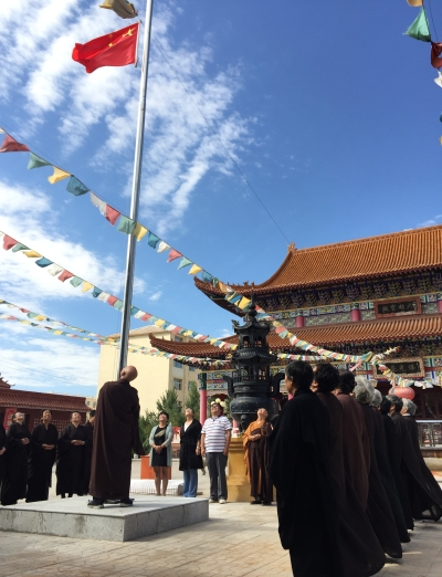 8月20日上午,苏尼特右旗在宗教场所开展升国旗仪式,在威严的国歌声中,一面面鲜艳的五星红旗在清真寺、吉祥寺、毕鲁图庙三个宗教活动场所院中冉冉升起。旗委统战部、委防范办、民宗局等部门负责人及宗教界人士、信徒近100人参加。