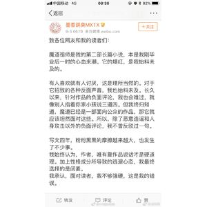 原标题:《魔道祖师》作者回应“人肉事件”:远离网络暴力