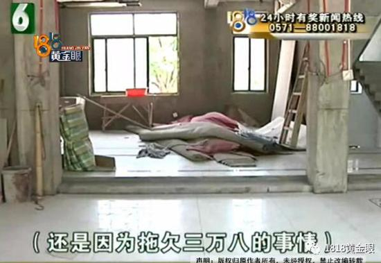 “鼎锐木门”汤老板:“门装好钱没付,欠我们三万八。”