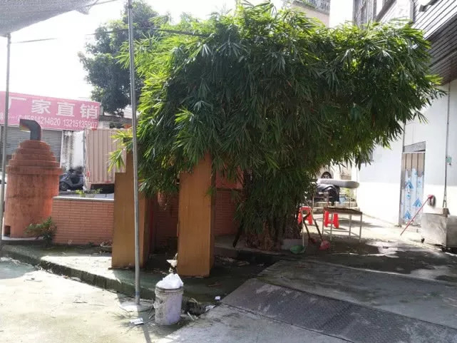 几番寻找,老板孙女士最终在店门口右侧的一个“小竹林”里,发现了一个很大的马蜂窝,还不停有马蜂飞进飞出。