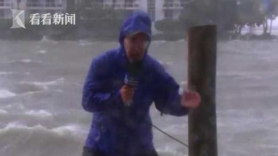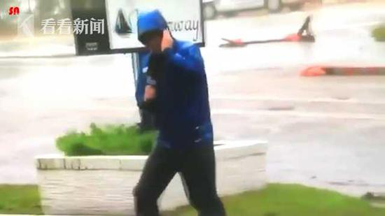 原标题:视频|记者直播飓风缩头站不稳 短裤男悠哉路过出卖他