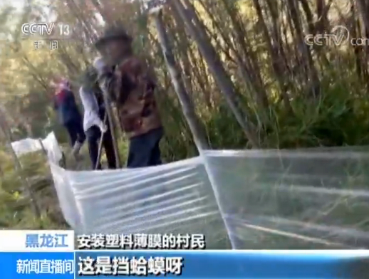 记者与中国野生动物保护协会的志愿者在9月初进行了为期半个月的跟踪拍摄,在伊春境内的汤旺河、依吉密河、欧根河、呼兰河流域进行调查与暗访,发现捕猎林蛙行为非常严重,大小林场里、公路两旁都有这样的一些设置,多在山脚下竖立起近一米高的塑料膜,以此来拦截林蛙并进行捕猎,当地人俗称“旱亮子”。