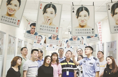 日前,南京市公安局经济技术开发区分局举行“防范通讯网络诈骗”宣传周进企业活动。在开发区一家大型企业的活动现场,由民警设计制作的防诈扑克牌成为最大亮点。此次“反电诈”宣传周进企业活动,是南京市公安局经济技术开发区分局针对企业众多且密集的特点,联合辖区银行共同组成“反电诈”宣传小组,根据宣传对象“量身定制”。通讯员 宁公宣 新华报业视觉中心记者 乐涛 摄