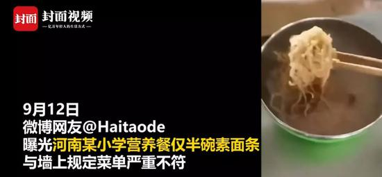 河南一小学营养餐黑板上写鸡丁却仅半碗素面