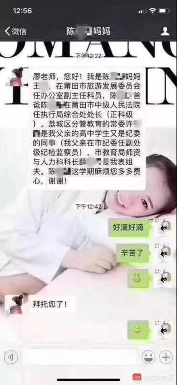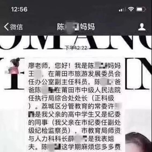 这位妈妈的心思你别猜,猜来猜去就会把她骂——有人说她是在炫耀自己家的权势,好让老师对自家孩子高看一眼;还有人说她在“置换资源”,为老师敞开“后门”,换取孩子在学校的一路绿灯。