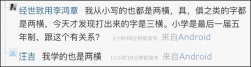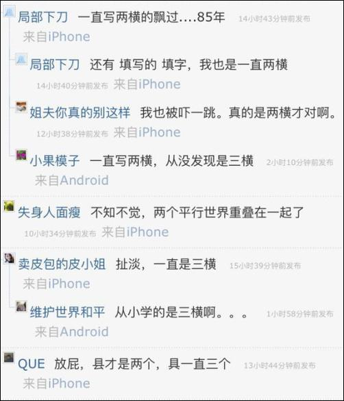 许多网友信誓旦旦地说从小老师教的就是两横,后来发现是三横,怀疑中国汉字偷偷改革过。