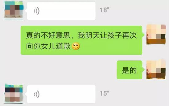 陈丽答道,“好的小艺爸爸,道歉是应该的。我再向我儿子说,明天当着老师同学的面,再向你女儿道歉。”陈丽还叮嘱,如果小艺的眼睛不舒服,一定要去看病,“需要我的话我可以跟你一起去。”
