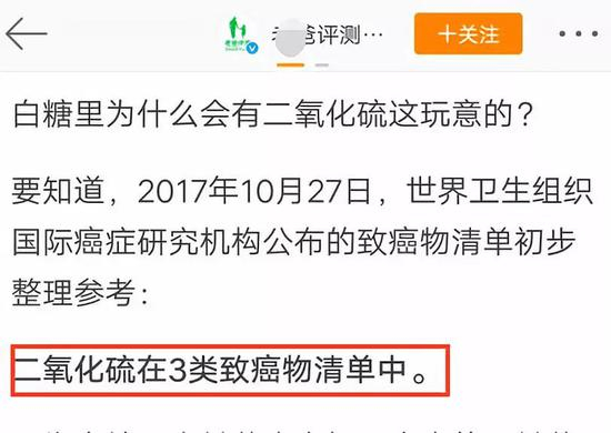 为了突出“二氧化硫”这个指标的重要性,该评测号在微博发布时,称“二氧化硫”是“三类致癌物”,不过,很快有网友指出,“三类致癌物”其实不是“三级致癌”,而是指“没有证据证明可以致癌的物质 ”。对于这一可能的误导内容,该评测号已经在微博上致歉。