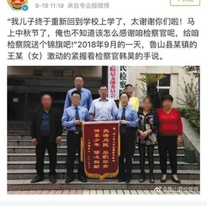 9月21日,鲁山检方发表文章《鲁山一初中生一时冲动犯错 检察官介入下双方冰释前嫌》,因为用词不当引发网友质疑,此后鲁山检方对另一起案件的不当用词也被网友翻出,该案入选河南省检察机关第二届精品案件。我们视频截图