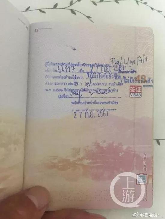 梅先生对记者出示了泰国方面在其护照上加盖的拒签章,意思为“乘客乘坐2018年9月27日泰国狮航航班Sl117,因没有随身携带必要的生活费用被拒签”。