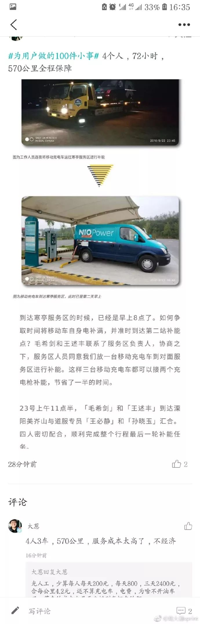 前述网友@路大通sprint 则发现,在蔚来App上,蔚来加电团队曾发布的一篇宣传文章配图中,竟有几辆用来运送充电车的板车。