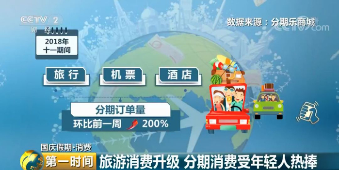 据数据显示,今年十一期间的旅行、机票、酒店类分期订单量环比前一周增长200%,VIP定制旅行需求订单环比增长100%,而高端品质酒店的订单额更是较前一周增长400%。