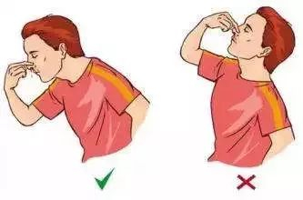 正确的姿势是低头(不是抬头、不是抬头、不是抬头,重要的事情讲三遍!),以免血液向后流进咽喉,轻轻从鼻孔两侧向中间鼻梁骨方向按压,再捏住鼻子至少 10 分钟。
