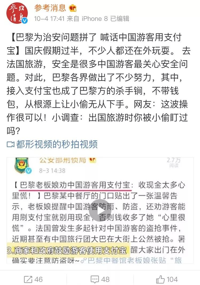 巴黎警察更是喊话中国游客