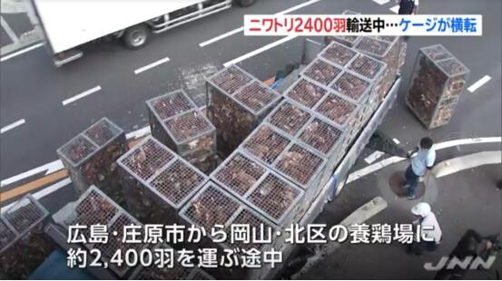 另据运输公司透露,该辆卡车当天打算从广岛县庄原市将2400只鸡送往冈山市北区的养鸡场。