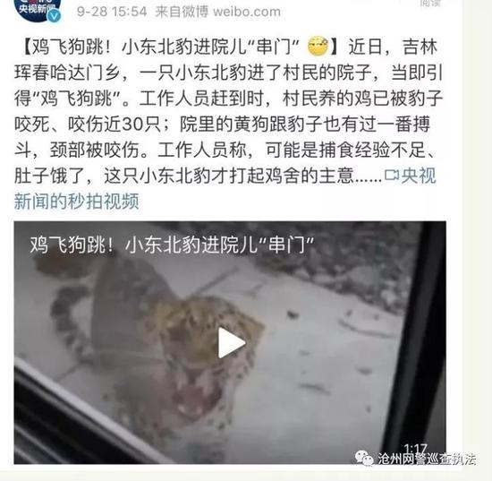 沧州多地出现金钱豹?警方:移花接木的谣言