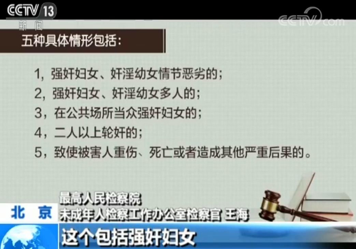 最高人民检察院未成年人检察工作办公室检察官 王海:我们认为这个案件强奸犯罪情节恶劣。根据《刑法》的规定,强奸犯罪,包括强奸妇女和奸淫幼女,具有五种加重情形的,应当是在十年(以上)有期徒刑,无期徒刑,乃至死刑,这个量刑幅度量刑。这个包括强奸妇女、奸淫幼女情节恶劣、强奸多人、轮奸等五种的具体情形。就强奸犯罪情节恶劣这个具体情形,不像其他四种情形一样,有比较具体的标准,这个需要办案人员根据整个案情来进行分析,来认定。