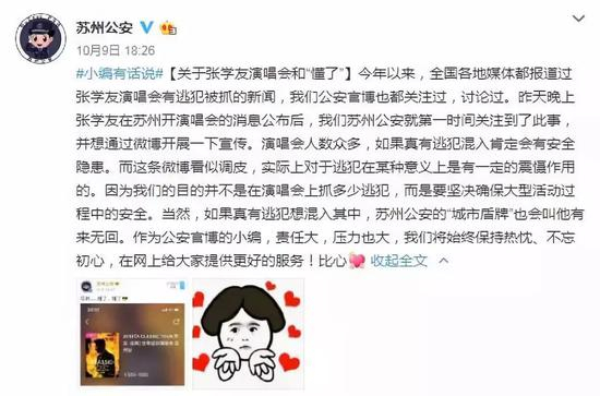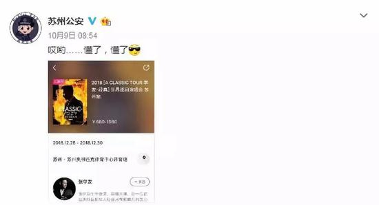 原标题:[荐读]张学友苏州演唱会在即,公安幽默发文:懂了