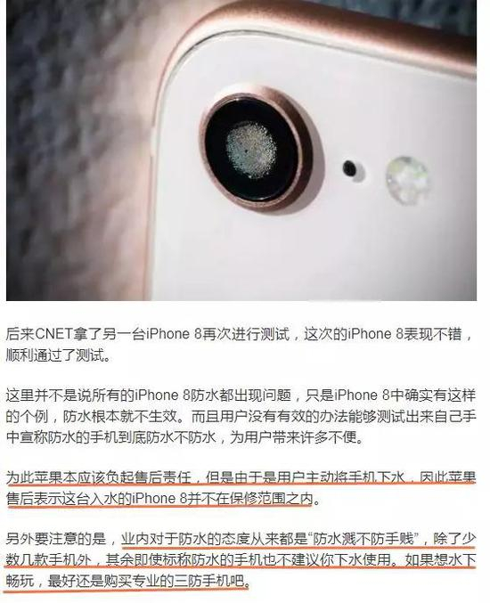 原标题:苹果称手机可在水中停留30分钟结果尴尬 官方回应