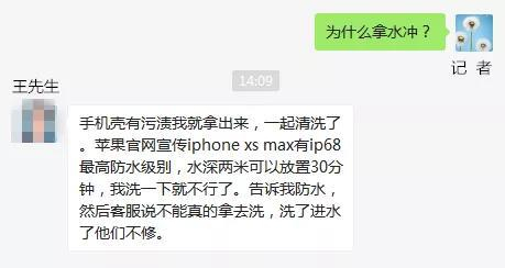 苹果客服人员回答:“我们这叫抗水防电功能。但是你进水了我们不会维修,你要自费!”