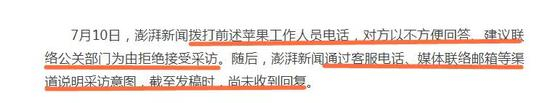 当时媒体记者拨打前述苹果工作人员电话,对方以不方便回答、建议联络公关部门为由拒绝接受采访。随后,记者通过客服电话、媒体联络邮箱等渠道说明采访意图,截至发稿时,尚未收到回复。