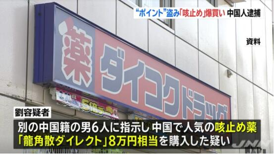 涉盗取35人乐天积分狂买止咳药 在日中国男子被捕