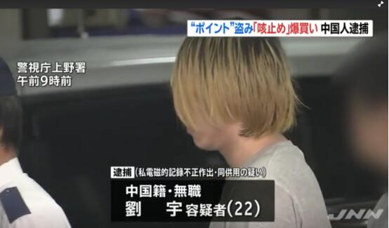 报道称,被逮捕的嫌疑人是中国籍无业人员刘宇,现年22岁。2016年10月,她在非法访问“乐天”服务器,盗取35人相当于70万日元(折合人民币4.32万元)的积分。