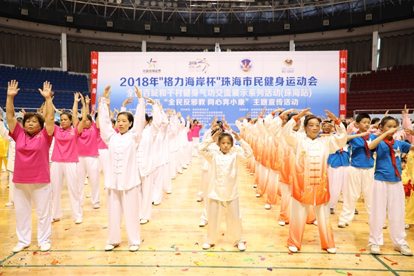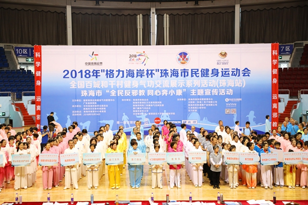 10月14日上午,由国家体育总局健身气功管理中心、广东省体育局主办,中共珠海市委政法委员会、珠海市文化体育旅游局承办的2018年全国百城和千村健身气功交流展示系列活动(珠海站)珠海市“全民反邪教 同心奔小康”主题宣传活动,在珠海市体育中心体育馆拉开帷幕,珠海全市各健身气功站点、澳门健身气功总会和部分高校学生共800多名选手参赛,展现出珠澳两地群众快乐健身的盛大场面。珠海市委政法委及珠海市文体旅游局相关领导出席了活动。