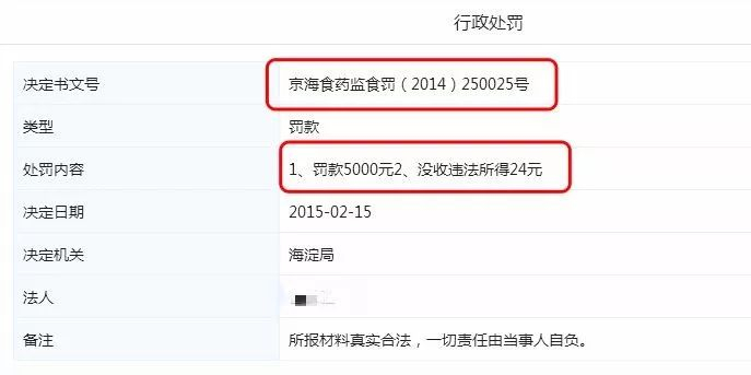 “天眼查”信息显示,该餐厅受到北京市海淀区食品药品监督管理局的行政处罚,罚款5000元。