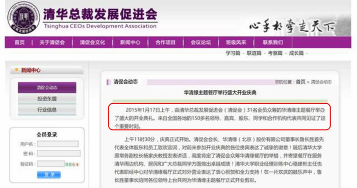 这家名为“华清缘”的主题餐厅开业。根据清华总裁发展促进会官网发布的消息,当天有超过150名领导、嘉宾、股东和同学参加了开业庆典。