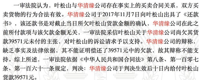 2017年,华清缘公司拖欠某供货商酒水款近4万元,该供货商于2018年2月向北京市海淀区人民法院提出诉讼。2018年6月,一审判决华清缘公司还款后,华清缘公司提出上诉。2018年8月,北京市第一中级人民法院二审驳回上诉,维持原判。