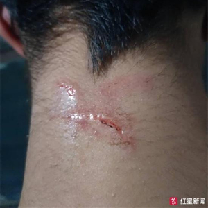 小金对当晚发生的一幕幕,仍印象深刻,但他否认自己还手打了妈妈,“我没有还手,不过这次确实是想还手了。”小金说,妈妈打了自己两下还是三下,他不记得了。但是父亲掐住他的脖子,骑在他身上,“他打的是要命的地方。”从小金给记者发来的照片看,其后颈、脖子上,都有抓挠的伤痕。刘某芬解释说,那是她打小金时不小心指甲划伤的,但小金称是父亲掐他脖子时留下的。