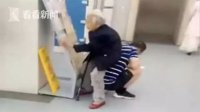 熊水源说,今年中秋节前,由于84岁的老母亲身体不好,所以带她去江西省中医院就诊。“当时也没想那么多,就是我老娘站不住,顺势蹲下来让她坐一下。”