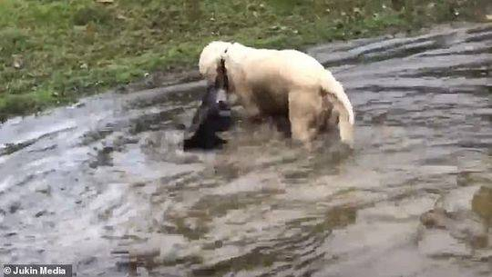 金毛犬湖中捕鱼 身手敏捷一口擒获大鲶鱼(图)