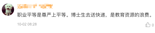 有人说,职业平等是尊严的平等,博士生送快递浪费教育资源: