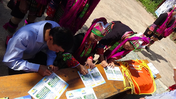 活动现场,瑶寨里的男女老少十分热情地参与了反邪拒邪宣传,瑶族反邪志愿者指导瑶胞使用手机进行网络签名,寨里的文艺宣传小分队还即兴表演了自编自创具有有民族特色的反邪教舞蹈和唱山歌,在山里干活的瑶胞闻声纷至沓来,场面十分活跃。上思县防范办工作人员和反邪教志愿者在旁边忙得不亦乐乎,向瑶胞分发了印有反邪教宣传标语的围裙和反邪宣传小册子,并欢迎瑶胞在“拒绝邪教承诺书”上签名。瑶族反邪志愿者还在瑶寨食铺对路过的瑶胞开展反邪教宣传。