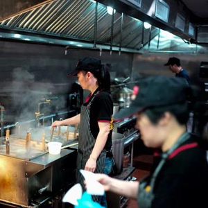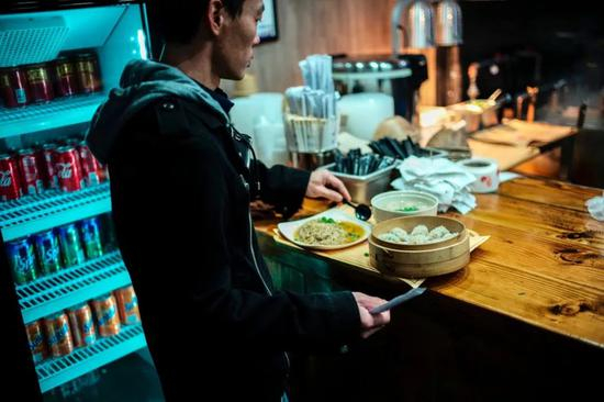 餐厅从早上8点营业到晚上11点。午餐时间是客流高峰期,顾客多得要排队拿号。也有许多人会打电话订餐,然后再到店里自取。忙的时候,出纳机每两分钟就会出一单餐。