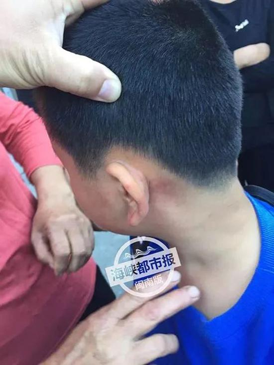 这两天,南安码头的陈先生,就遇上非常气愤的事,12岁的儿子小陈,上周六去托管班时,身上被打出多处伤痕,还出现头晕呕吐的症状。
