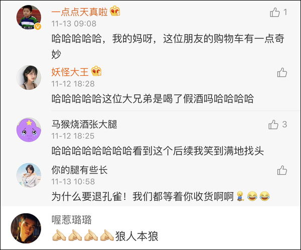 原标题:双11购物荒谬冠军诞生!男生喝醉后错买孔雀、娃娃鱼…