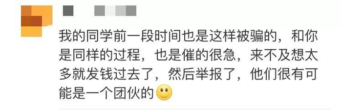 图片来源:微博截图 但是也有不少网友都留言表示,自己也被相同套路骗过钱,说明这个骗局已经存在一些日子了。